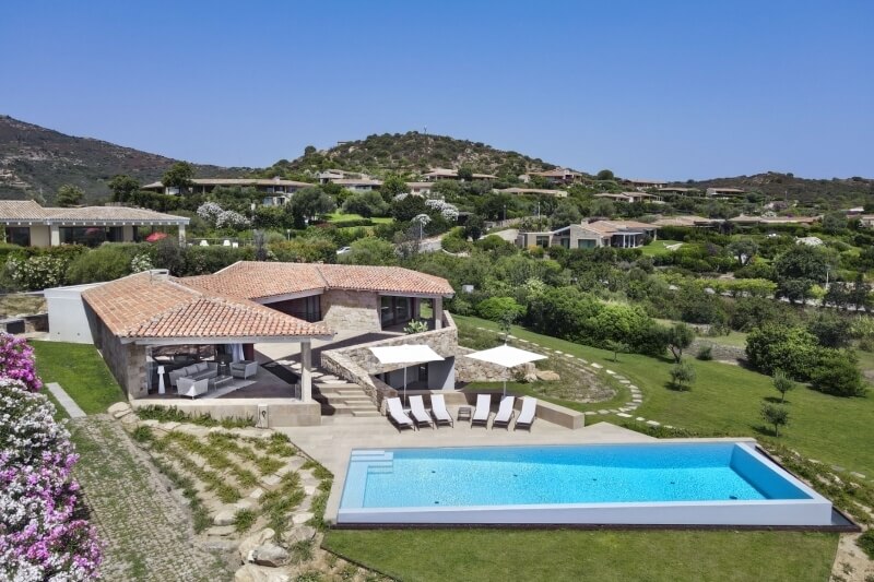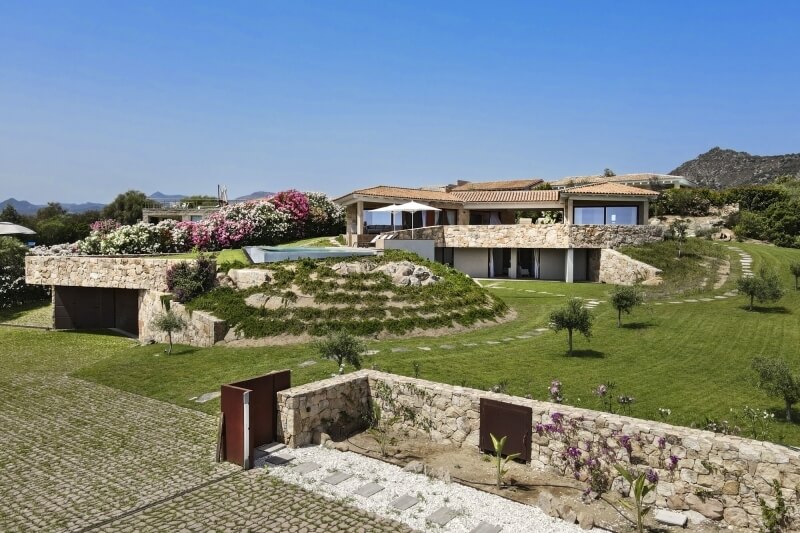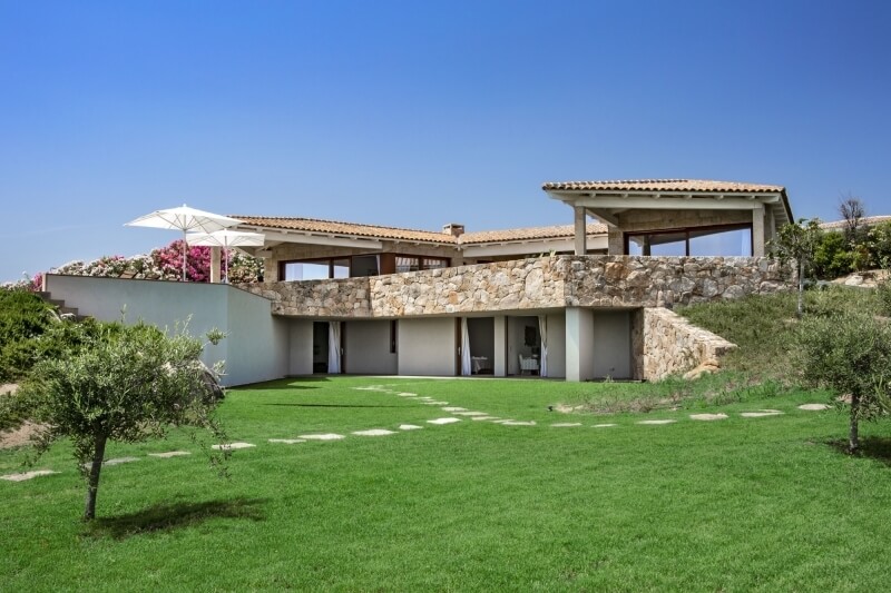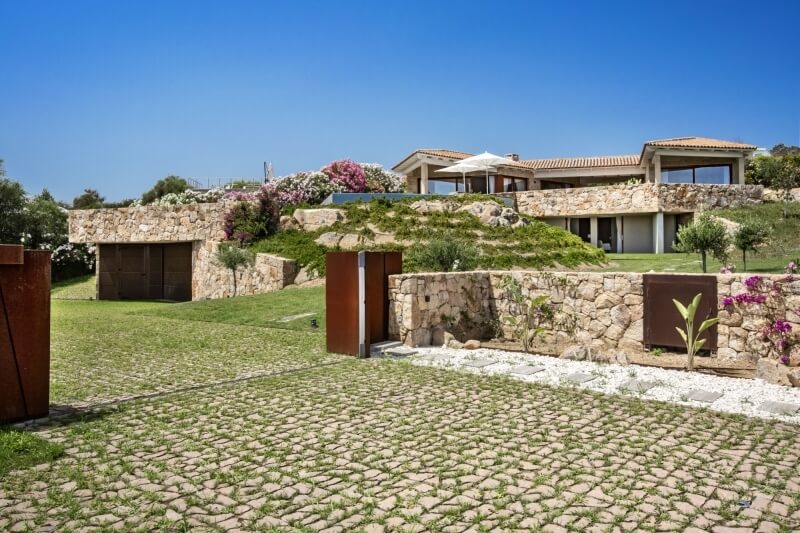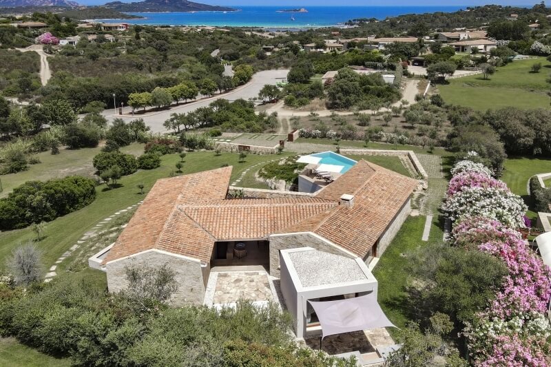 Die Villa befindet sich in unmittelbarer Nähe des Ortseingangs und bietet einen faszinierenden Blick auf das türkisfarbene Wasser des Strandes von Lu Impostu. Sie besteht aus einem einzigen Gebäude und einem leicht abfallenden Garten. Daher wurde das Haus in zwei Ebenen unterteilt, wodurch das Anwesen im Erdgeschoss und Hochparterre liegt. .