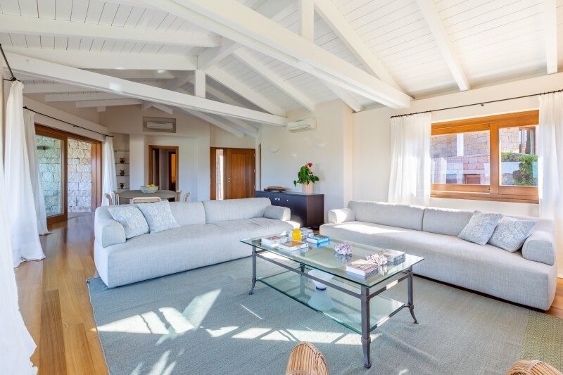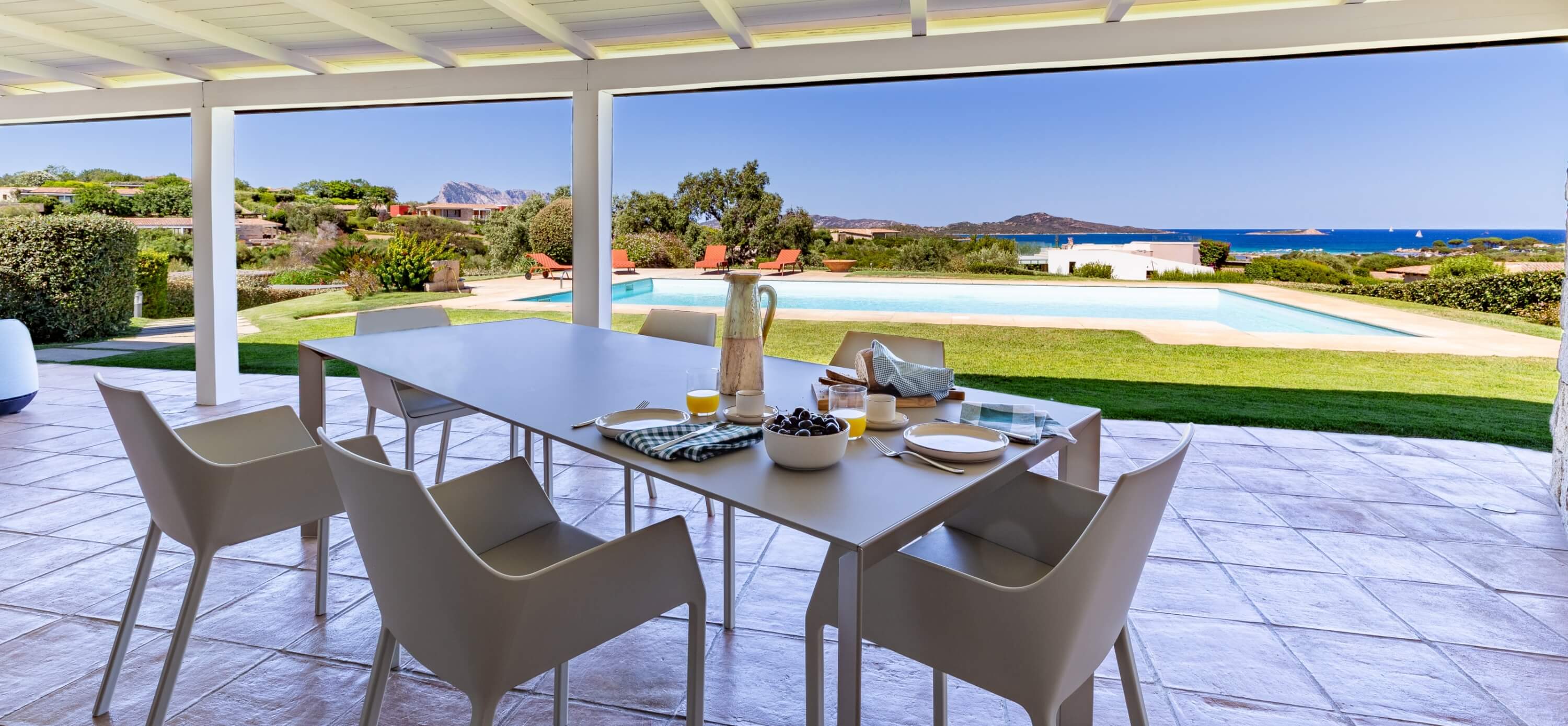 Entourée d’une végétation luxuriante et offrant une vue imprenable sur la splendide baie de Lu Impostu, la villa accueille ses hôtes dans un style sobre et harmonieux, où architecture et
