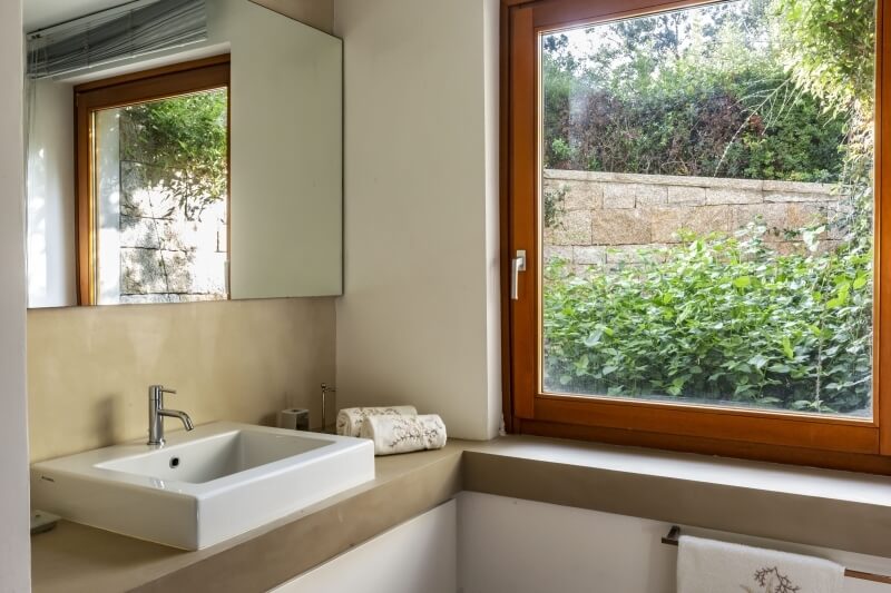 Le jardin bien entretenu, entièrement recouvert d'une pelouse douce et de plantes autochtones telles que des arbousiers, des oliviers sauvages et des myrtes, mesure environ 2 000 mètres carrés.