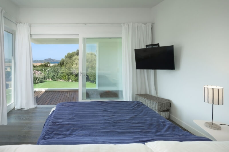 Avec sa position privilégiée offrant une vue panoramique inoubliable sur la baie de Lu Impostu, l'une des plages les plus réputées de Sardaigne, la magnifique villa se distingue par l'essentialité et la géométrie de ses formes et de son ameublement.