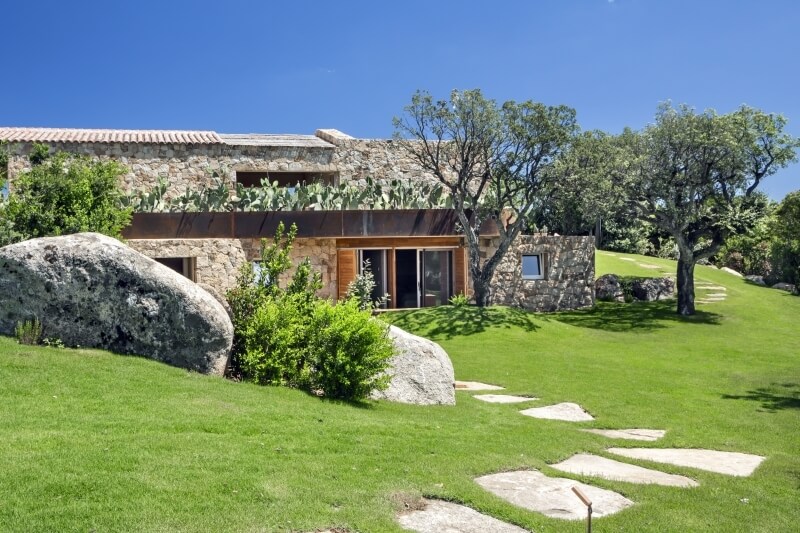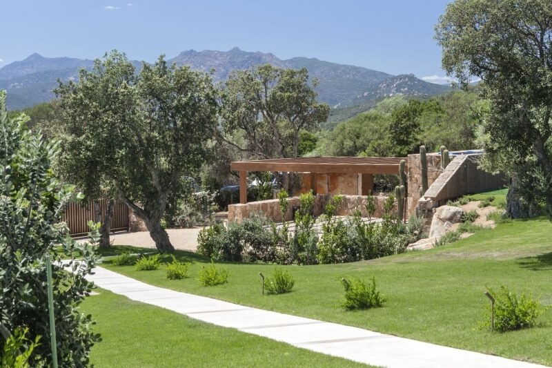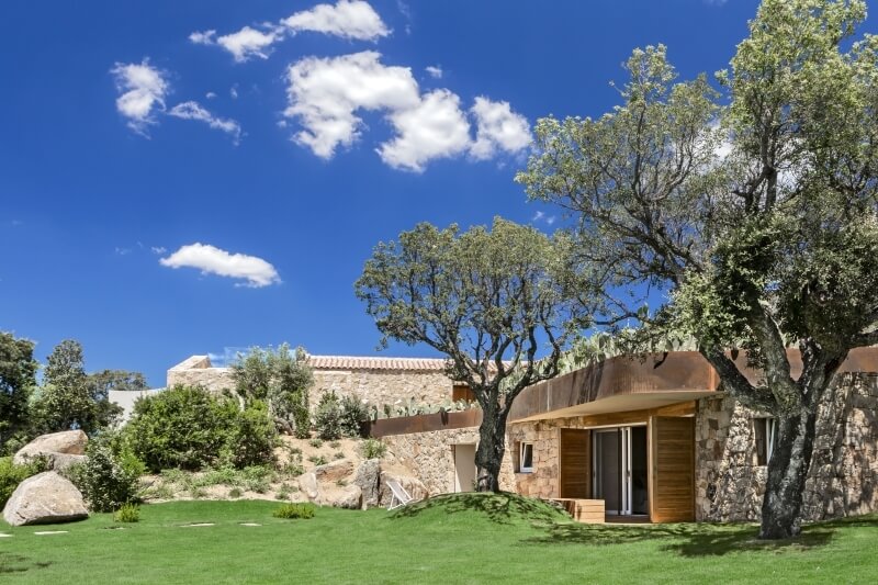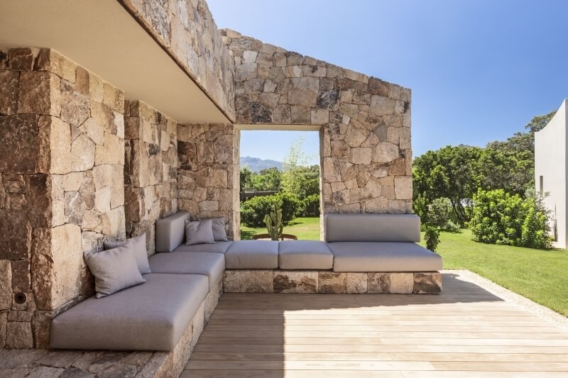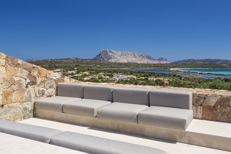 La Villa Opuntia, récemment construite, se distingue par un design architectural particulier. À l'intérieur, un style moderne prédomine avec des meubles sur mesure, tandis que l'extérieur, revêtu de pierre, rappelle les maisons de campagne sarde appelées "Stazzo Gallurese". Cela confère à la villa une ambiance ancienne qui s'harmonise parfaitement avec la nature environnante.