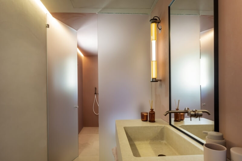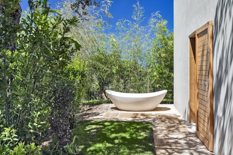 En empruntant un chemin de gravier intégré dans la pelouse anglaise, vous atteindrez le sous-sol de la villa, composé de deux autres chambres, l'une avec un lit double et l'autre avec un lit double et deux lits simples gigognes, toutes deux avec salles de bains privatives. Ces chambres offrent également un accès direct au jardin par une porte coulissante.