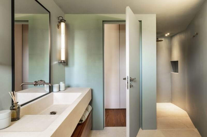 Le sol du bâtiment principal est en parquet, tandis que le sol de la maison d'hôtes est en marbre d'Orosei.