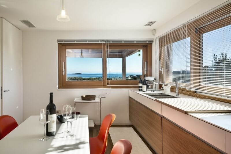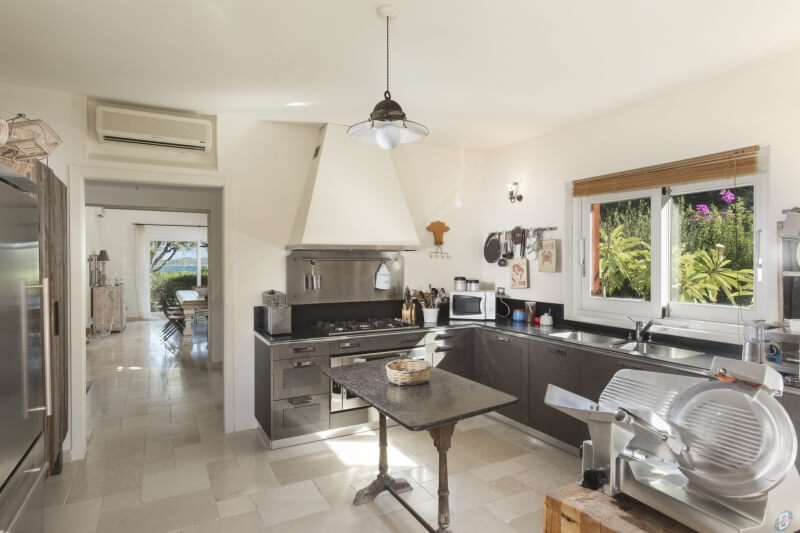À l'intérieur, la partie jour se compose d'un grand salon et, surélevée de quelques marches, d'une cuisine et d'une salle à manger. Sur le côté de la salle à manger, une véranda avec une grande table est parfaite pour les dîners d'été. De l'autre côté, le salon est relié à la belle chambre principale avec son propre accès au porche et une salle de bain privée avec baignoire. Attenante à ce corps, se trouve une autre chambre double, avec salle de bain privée, complètement autonome. .