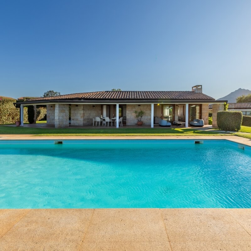 Circondata da una vegetazione rigogliosa e affacciata sulla splendida baia di Lu Impostu, la villa accoglie con il suo stile sobrio e armonico, dove architettura e paesaggio dialogano in perfetta sintonia.
