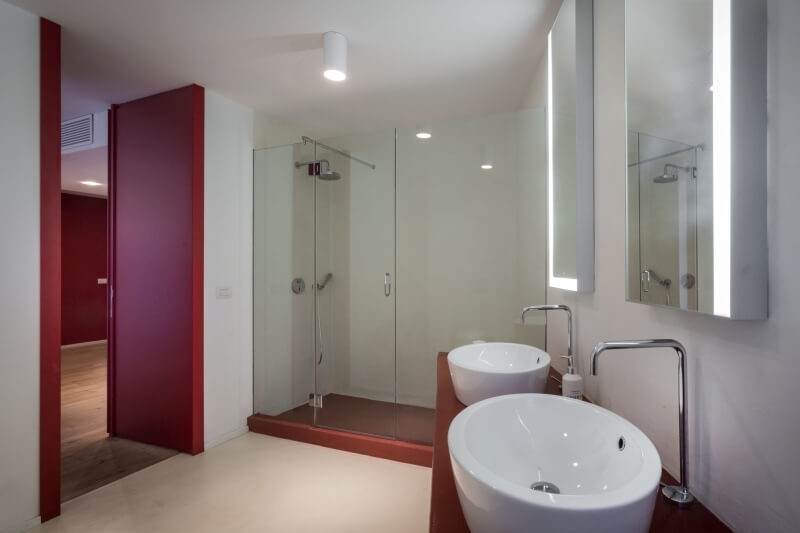 Infine, poco prima dell’ingresso del patio, una piccola scala in granito porta ad un altro seminterrato, dove si trovano la lavanderia con il bagno, oltre alla camera riservata allo staff.